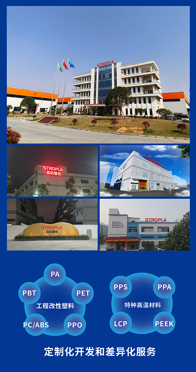 如今的高科塑化已经发展成一家集特种高分子材料研发、生产及销售于一体的国家专精特新“小巨人”企业。高科塑化深耕于PPS、PPA、LCP、PEEK 特种高温材料,以及PA、PBT、PET、PPO、PC/ABS 等工程改性塑料定制化开发和差异化服务。